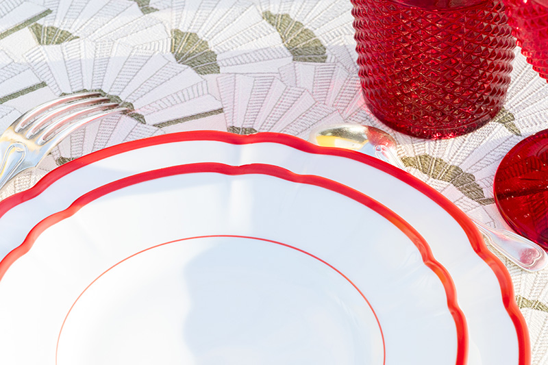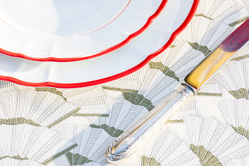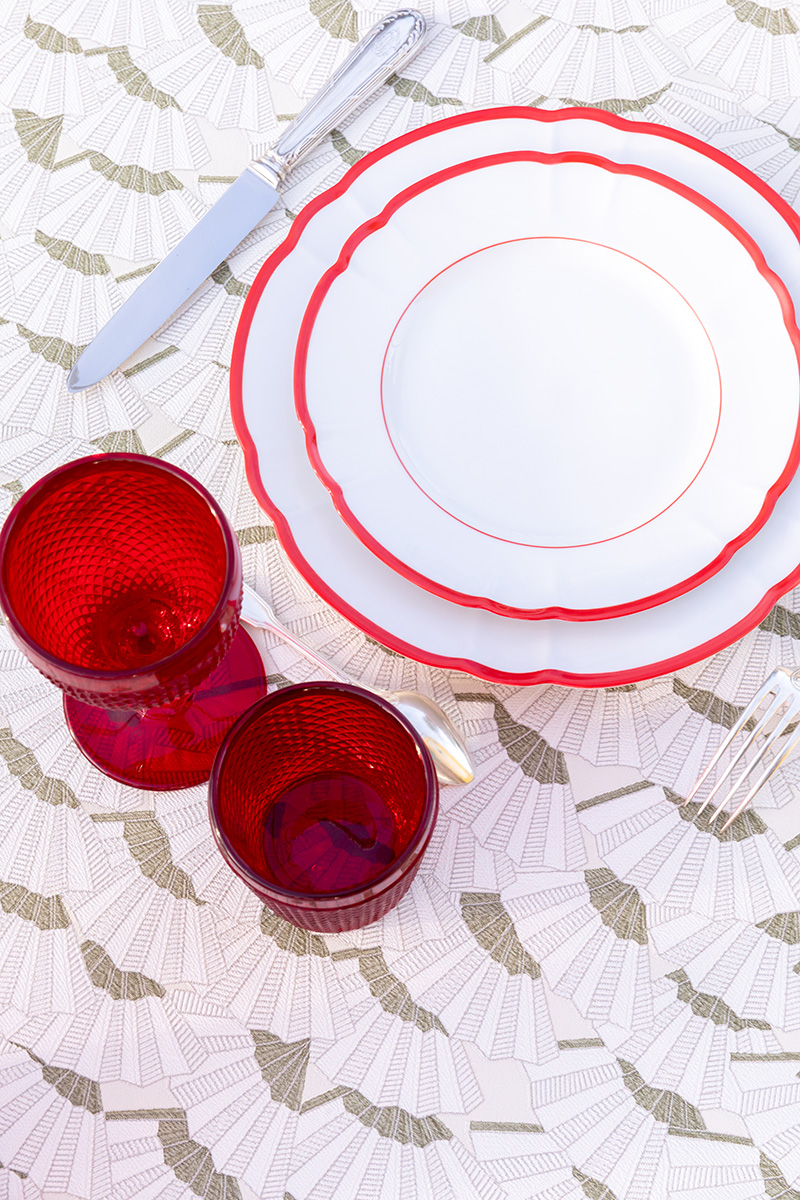 Ce décor sur assiette forme Mozart avec ses filets or ou platine fut commandé pour reproduire le service de table de la maison de campagne de l’écrivain.